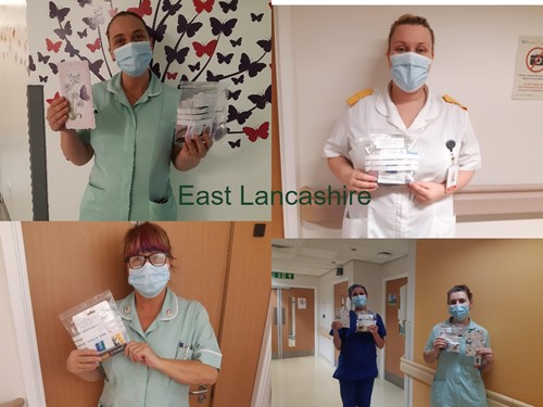 The goody bags were funded by the branch and items contained tea coffee pens and biscuits additionally pamper products (garnier face masks) were donated by ELHTand me(the trusts charity). The cards were funded by the MSW development team for the LMS and signed by the team, East Lancs RCM branch and the HoM.