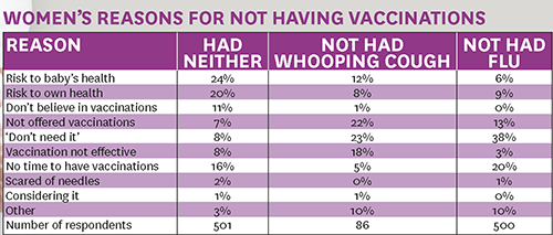 ‘Some services think midwives should take professional responsibility for understanding the information they offer women and don’t have particular competencies for midwives as they don’t administer vaccinations,’ said one. ‘But my service makes sure midwives working in antenatal care have vaccinations as part of their mandatory training. We do refresher on-site updates with staff when the flu season is coming up.’