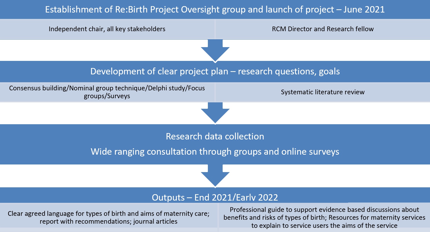 • To engage in sharing the findings and output of the project upon its completion with a wide range of stakeholder groups to ensure that the methodology and fjndings of the project are widely understood among the maternity community.