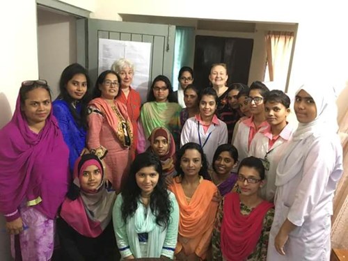 Over the past year she has been proactive in her desire to shape the future of midwifery in Bangladesh by attending a number of RCM and BMS workshops and providing valuable input as a student midwife. Here she is below with Aine Alam, who volunteered on the project in 2017.